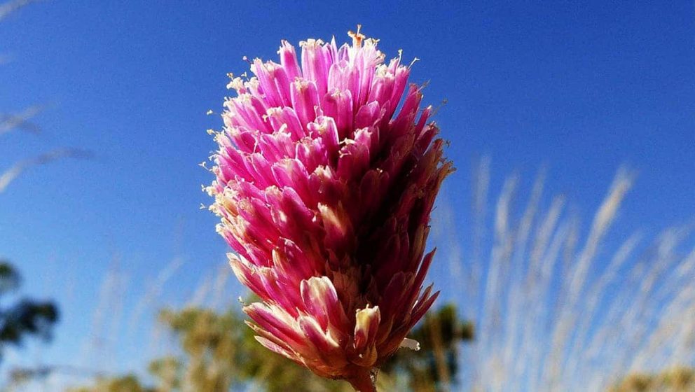 We often see Bachelor's Button which is a small pink round flower. These are pretty to look at close up. Another eye catching flower we see is the Mulla Mulla - these are long purple flowers that seem to brighten up the roadside along the highway.